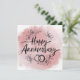 "Stellen Sie sich zwei Tauben vor, die unter einem Maron und einem rosa Disco-Ballherz Tango spielen. Sie sind von Lieben getroffen. Freudenblasen schweben um sie herum, während sie ihre Champagnergläser erheben und für immer toasteln. Der Text "Happy Anniversary" windet sich in der Mitte widerlich. Es ist nicht nur eine Karte, es ist ein Feierungstanz!"
