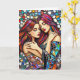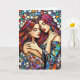 LGBT Happy Jubiläumskarte für lesbische Paare. Zwei wunderschöne Frauen, die sich in der Liebe umsehen. Helle, lebendige Imitate Mosaikfliesen ai art Illustration.