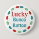 Bunter glücklicher Knopf kennzeichnet einen grafischen geometrischen Entwurf in den Retro Farben. Benutzen Sie diesen viel Glückknopf an Ihrem folgenden Bunco Ereignis, an Fußballturnier, an Bingonacht, an Spielnacht, an Kasinonacht, Sportveranstaltung an, an Wahl, an Golfspiel und an mehr. Ändern Sie Textnachricht, um Ihre eigene Persönlichkeit zu passen!.
