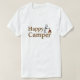 Der glückliche Lagerbewohner des Sprichworts mit Eibischen eines Strichmännchens Bratüber einem Lagerfeuer.