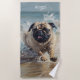 Glücklicher Mops am Strand individuell anpassbar Strandtuch