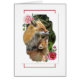 Ein süßes Bild eines roten Fuchs Kit, das seine Mutter mit einem blühenden Rahmen nagelt.