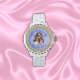 Mit Monogramm für Sie, ein eigenes Bild einzufügen und den Text zu ändern. Happy Mother's Day - Für meine Ehefrau mit einer niedlichen Mutter und einem Sohn auf blauem Hintergrund. Kristall White Enamel Uhr.