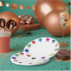 Geburtstags-Papierplatten-Ausrüstungsbeschreibungen diese glücklichen Kinder eine Kreisparade von zwölf vibrierend farbigen Elefanten stehend um die Kante der Platte.