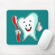 Glücklicher niedlicher Cartoon-Zahn mit einer Mousepad