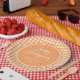 Glücklicher orange Gingham des Erntedank-| Pappteller