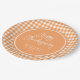 Dieser trendy Erntedankpapier-Teller kennzeichnet einen orange Ginghamhintergrund, mit modernem handgeschriebenem Skript.