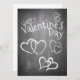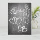 Valentine im Chalkboard-Stil mit Herz und handgeschriebenen kalkigen Grüße auf der Vorderseite der Karte. Die übrigen Bereiche sind frei zugänglich.