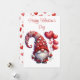 Glücklicher Valentinstag Gnome Das Bild zeigt einen stilisierten Gnome mit herzförmigen Ballons und Herzen. Der allgemeine Ton ist skurril und spielerisch.