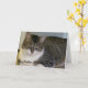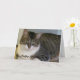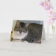 Eine verspätete Geburtstags-Karte, die eine Tabbykatze mit dem Text "glücklicher verspäteter Geburtstag" kennzeichnet.