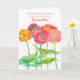 Eine fröhliche individuelle Name-Karte für den "Administrative Professional's Day" mit einem Bouquet mit hellen Zinnia-Blume in Rosa, Rot, Gelb und lila Handgemälden mit Aquarellfarben, die mit Spatter-Punkten um die Blume besticht. Ein orangefarbenes Zinnia schmückt das Innere. Sie können den Namen auf der Vorderseite und die Nachricht an Ihre Bedürfnisse anpassen.