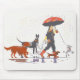 Glücklicher Weg, Mädchen nimmt Satz Hunde für einen Weg unter Regen. Mousepad Entwurf.
