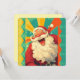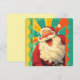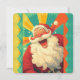 Eine lebendige, animierte Szene entfaltet sich mit einem fröhlichen Weihnachtsmann in der Mitte, dessen Lachen durch die Luft hallt. Die Kamera führt einen dynamischen Zoom durch, der die Details seines ausdrucksstarken Gesichts und des flauschigen Bartes einfängt. Helle Farbstrahlen brechen hinter ihm hervor und schaffen eine festliche Atmosphäre. Der Hintergrund zeigt spielerische geometrische Muster, die die fröhliche Stimmung verstärken. Die Beleuchtung ist warm und einladend, mit einer Palette aus Rot-, Grün- und Gelbtönen, die ein Gefühl von Weihnachtsfreude hervorruft.