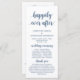 Herzlich willkommen in unserer Hochzeitstypografie, dem eleganten, modernen rustikalen Navy Blue-Script, der Veranstaltungskarte für Hochzeitsfeier. Es ist mit Scrollakzent entworfen, der personalisiert werden kann mit benutzerdefiniertem/personalisiertem Text für Ihr Brautparty, Zeremonie Details, Gedenkhinweise und Dankeschön-Nachricht. Wenn Sie weitere Programmkarten-Typen und -Größen suchen, durchsuchen Sie bitte unseren passenden Programmkartenabfrageabschnitt.