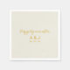 Die eleganten Servietten sind einfach und minimalistisch gestaltet. Eine elegante "glücklich immer nachher" Goldskripttypografie, gefolgt von einem einfachen und modernen serifenlosen Schriftart für frisch vermählte mit Monogramm Initialen und Hochzeitstag auf raffiniertem, traditionellem Alabaster-Weiß-Hintergrund.