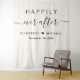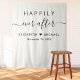 Einfache cremefarbene Hochzeitsempfang mit Foto-Hintergrund mit "Happily Ever After" in einer Mischung aus einfachen Typografie und einem stilvollen Drehbuch mit Swashes, Ihren Vornamen und dem Veranstaltungsdatum.