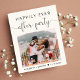 Günstige und elegante helle Creme oder kleinere Hochzeitsankündigung und Empfang Einladung. Die Vorderseite zeigt Ihr Foto "Happily Ever After Party" in einer Mischung aus einfachen Typografie und einem hübschen Drehbuch mit Swashes und Ihren Vornamen und Hochzeitstag. Auf der Rückseite können Sie Ihre Nachricht detaillierter personalisieren und Party- oder Empfang-Einladungsdetails und Ihre Namen in einem signaturähnlichen Skript hinzufügen.