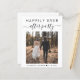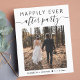 Kostengünstige moderne Einrichtung oder kleinere Hochzeitsankündigung und Empfang-Einladung. Die Vorderseite zeigt Ihr Hochzeitstag Foto und "Happily Ever After Party" in einer Mischung aus einfachen Typografie und trendigen Drehbüchern mit Swashes. Unter Ihrem Foto können Sie Ihre Vornamen und das Hochzeitstermin hinzufügen. Auf der Rückseite können Sie Ihre Nachricht detaillierter personalisieren und Party- oder Empfang-Details und Ihre Namen in einem signaturähnlichen Skript hinzufügen. Dieses halbglänzende Haushaltspapier ist gewichtsähnlich wie Foto. Eine traditionelle Version mit dicken Karten ist ebenfalls verfügbar (Nachricht für den Link).