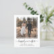 Einfache und schicke Eleganz oder kleine Hochzeitsankündigung Hochzeitsempfang oder Feier Party Einladung. Die Vorderseite zeigt Ihr Foto in einem ausgeschnittenen quadratischen Rahmen, "glücklich immer danach" in einem trendigen Drehbuch mit Swashes und Ihren Vornamen und Hochzeitstag und Ort in der modernen Typografie. Auf der anderen Seite können Sie Ihre Hochzeitsankündigung detaillierter gestalten, einen Empfang oder eine Party Einladung hinzufügen und Ihre verheirateten Namen in einem signaturähnlichen Skript unterschreiben.