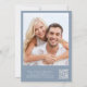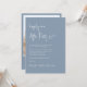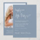 Minimalistische, staubblaue Hochzeitsempfehlung mit "Happily Ever After Party" in einem schicken weißen Drehbuch, der Einladung in klassischer weißer Serifentypografie und Ihren Namen in einem signaturähnlichen Skript. Auf der Rückseite laden Sie Ihr Foto hoch und geben Sie Ihre Website-Adresse, um einen QR-Code zu erstellen, den Ihre Gäste online scannen können und weitere Details erhalten können.