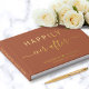 Elegantes Terracotta Hochzeitsgast-Buch mit echter Goldfolie, "Happily Ever After" in einer Mischung aus einfachen Typografie und einem schicken Skript mit Swashes, Ihre Namen durch ein Herz verbunden und Ihr Hochzeitsdatum. Personalisieren Sie Ihren Titel auf der Wirbelsäule und fügen Sie ein Foto auf der Rückseite hinzu.