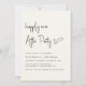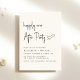 Chic helle cremefarbene minimalistische Hochzeitsempfehlung mit "Happily Ever After Party" in einem modernen Drehbuch, Ihre Details in einfachen Schriften und Ihre Namen in klassischer Serifentypografie.