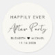 Ein eleganter, heller Aufkleber für Ihre Hochzeitsempfang-Party Einladungen, Favoriten und Dankeschön-Karten mit "Happily Ever After Party" in einer Mischung aus einfacher Typografie und einem stilvollen, modernen Drehbuch, Ihren Vornamen verbunden mit einem Herz und Ihrem Empfang Datum.