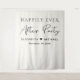 Chic helle Creme Foto Hintergrund Tapestry für Ihre Hochzeit oder Feier Party mit "Happily Ever After Party" in einer Mischung aus einfachen Typografie und ein modernes Drehbuch und Ihre Vornamen und Empfang Datum.