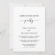 Einfache Hochzeitsempfehlung nur Einladung mit "Happily Ever After Party" in eleganter Typografie. Diese moderne Schwarz-Weiß-Rezeption nur Einladung ist ideal für ein Ehepaar, das bereits verheiratet ist und will, mit Freunden und Familie zu feiern, nachdem sie entstanden sind.