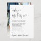 Minimalistische Hochzeitsempfehlung mit "Happily Ever After Party" in einem schicken, modernen Drehbuch. Personalisieren Sie Ihre Heiratsankündigung und -einladung einfach und fügen Sie Ihre Namen in ein signaturähnliches Skript ein. Auf der Rückseite finden Sie Foto, Namen, Hochzeitsdaten und Empfang.