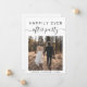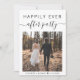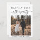 Minimal modernes Design oder kleinere Hochzeitsankündigung und Empfang Einladung. Die Vorderseite zeigt Ihr Hochzeitstag Foto und "Happily Ever After Party" in einer Mischung aus einfachen Typografie und trendigen Drehbüchern mit Swashes. Fügen Sie unter Ihrem Foto Ihre Vornamen und Ihr Hochzeitstermin hinzu. Auf der anderen Seite, personalisieren Sie Ihre Hochzeitsankündigung und Empfang-Einladung detaillierter, geben Sie Ihre Website Adresse, um einen QR-Code für Gäste zu scannen, um Ihre Hochzeitsfeier, alle Einzelheiten und UAWG online, und fügen Sie Ihre Namen in einem signaturähnlichen Skript.