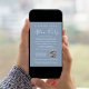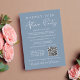 Chic staubblaue Entdeckung oder private Hochzeitsankündigung und Hochzeitsempfang oder Feier Party Einladung. Die Vorderseite zeigt "Happily Ever After Party" in schlichter weißer Typografie und einem modernen weißen Drehbuch. Personalisieren Sie Ihre Ankündigung und Einladung und fügen Sie Ihre Namen in ein signaturähnliches Skript ein. Geben Sie die URL-Adresse Ihrer Hochzeitswebsite ein, um einen QR-Code zu generieren, den Ihre Gäste online scannen und alle Details erhalten können. Auf der Rückseite finden Sie Ihr Lieblings-Foto, Ihre Vornamen und Ihr Hochzeitstermin.