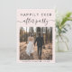 Modernes, hellrosa Ambiente oder kleinere Hochzeitsankündigung und Einladung zum Empfang, um Familie und Freunden zu informieren, dass Sie in einer kleinen intimen Hochzeitsfeier verheiratet waren, und sie jetzt zu einem Hochzeitsempfang einzuladen. Die Vorderseite zeigt Ihr Hochzeitstag Foto und "Happily Ever After Party" in einer Mischung aus einfachen Typografien und einem trendigen Drehbuch mit Swashes. Fügen Sie unter Ihrem Foto Ihre Vornamen und Ihr Hochzeitstermin hinzu. Auf der Rückseite personalisieren Sie Ihre Nachricht detaillierter und fügen Sie Party- oder Empfang-Einladungsdetails und Ihre Namen in ein signaturähnliches Skript ein.