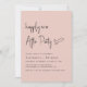 Chic blush pink minimalistische Hochzeitsempfehlung Einladung mit "Happily Ever After Party" in einem modernen Drehbuch, Ihre Details in einfachen Schriften, und Ihre Namen in klassischen Serif Typografie.