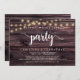 Schönes Glück für immer nach dem Party, Hochzeitsfeier Ankündigung / Einladungskarte, in der modernen rustikalen braunen dunklen Holz, String-Lichter-Design. Dies ist ideal für Ihren Hochzeitsempfang und Ihr Party nach der Hochzeit. Fügen Sie Ihre Daten in passender Schriftart / Schrift hinzu. #TeeshaDerrick