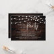 Wunderschönes Ever After Party, Hochzeitsfeier Ankündigung / Einladungskarte, in rustikalen Bauernhof dunkelbraunes Holz, mit Hütte Party Saitenleuchten Design. Dies ist ideal für Ihren Hochzeitsempfang und das Party nach der Hochzeitsfeier.
