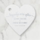 Fügen Sie Ihre eigene Touch zu diesem schlicht eleganten Design hinzu, das in fließender Schrifttyp-Schrift mit den Worten "glücklich immer nach" Set und langen Schwanz-Glyphen sowie dem Namen und dem Hochzeitstag der Braut und des Bräutigams in Silberfolie auf der Vorderseite des Tags versehen ist. Die Worte "danke" sind Set in fließender Rose Goldskripttypografie und langen Schwanz-Glyphen zusammen mit "für das Feiern mit uns" in kontrastierenden formellen dunkelgrauen Text sind auf der Rückseite. Kontaktieren Sie mich, wenn Sie Hilfe oder eine individuelle Bestellung benötigen.