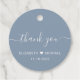 Chic dusty blue Gvor Tags für Ihre Hochzeitsfeier, Verlobungsfeiern, Probe-Dinner, Paarduschen und andere Hochzeitsfeiern mit "Danke" und "Happily Ever After" in schlichter, moderner weißer Typografie und einem eleganten, weißen Drehbuch mit Wimpern, Ihren Vornamen verbunden mit einem Herz und Ihrem Hochzeitstag.