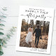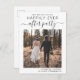 Moderne, Save the Date Postkarte für Ihre Nachbearbeitung oder kleine Hochzeitsfeier oder Ihr Party mit Foto und "Save the Date für unser glückliches Party" in einer Mischung aus einfacher Typografie und einem trendigen Drehbuch mit Schlagzeug. Fügen Sie unter Ihrem Foto Ihre Vornamen und das Datum und die Position des Empfangs/Party hinzu. Auf der Rückseite können Sie weitere Details angeben.
