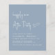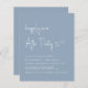 Eine preisgünstige, staubblaue Hochzeitsempfehlung mit "Happily Ever After Party" in einem schicken, modernen, weißen Drehbuch und Ihren Namen in klassischer Serifentypografie. Dieses halbglänzende Foto-Papier ähnelt dem herkömmlichen Papier; es ist auch eine klassische Kartenversion verfügbar (Nachricht für den Link).