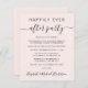 Leicht rosa, preisgünstige Unterkunft oder private Hochzeitsankündigung und Hochzeitsempfang. Die Vorderseite zeigt "Happily Ever After Party" in einer Mischung aus einfacher Typografie und einem stilvollen Skript mit Swashes, und Sie können Ihre Nachricht und Einladung detaillierter und Ihre Namen in einem signaturähnlichen Skript personalisieren. Auf der Rückseite finden Sie Ihre Vornamen und das Hochzeitstermin.
