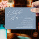 Mit unserer modernen dustig blauen Themenpräsenz für Hochzeitsfeier "Feiern Sie mit uns" geben Sie Ihr Glück und Ihre Freude bekannt. Diese Einladung ist für Paare gedacht, die ihre Liebe fortsetzen und ein perfektes Gleichgewicht von Eleganz und Charme schaffen. Sie bietet den Rahmen für ein unvergessliches Erlebnis. Das moderne Skriptdesign verleiht Ihrem Tag eine Touch zeitloser Anmut. Entworfen von der talentierten TeeshaDerrick, ist diese Einladung ein stilvoller Ausdruck Ihrer anhaltenden Liebe.