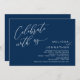 Mit unserer modernen marineblauen Hochzeitsfeier-Einladungskarte "Feiern Sie mit uns" geben Sie Ihre Freude und Freude bekannt. Diese Einladung ist für Paare gedacht, die ihre Liebe fortsetzen und ein perfektes Gleichgewicht von Eleganz und Charme schaffen. Sie bietet den Rahmen für ein unvergessliches Erlebnis. Das moderne Skriptdesign verleiht Ihrem Tag eine Touch zeitloser Anmut. Entworfen von der talentierten TeeshaDerrick, ist diese Einladung ein stilvoller Ausdruck Ihrer anhaltenden Liebe.