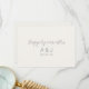 Passen Sie diese elegante Hochzeitskarte mit einem einfachen und minimalistischen Design an. Eine elegante "glücklich immer nachher" silberne Schriftzeichen-Typografie, gefolgt von einem einfachen und modernen serifenlosen Schriftart für frisch vermählte mit Monogramm Initialen und Hochzeitsdatum auf raffiniertem, traditionellem perlweißem Hintergrund. Wir bedanken uns für die Feier unserer Hochzeitsbotschaft im Hintergrund, um sie Ihren Gästen noch mehr zu vermitteln. Verlass es leer, wenn du deinen Gästen lieber eine handschriftliche Notiz schicken willst.