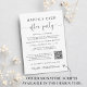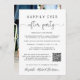 Stilvolle Entdeckung oder private Hochzeitsankündigung und Hochzeitsempfang oder Feier Party Einladung. Vorn ist "Happily Ever After Party" in einer Mischung aus einfacher Typografie und elegantem Drehbuch mit Swashes geschrieben. Sie können Ihre Botschaft und Einladung detaillierter personalisieren, einen QR-Code erstellen, der mit Ihrer Hochzeitswebsite verknüpft ist, damit Ihre Gäste mehr Informationen und UAWG online einsehen können und Ihre Namen in einem signaturähnlichen Skript hinzufügen können. Auf der Rückseite finden Sie Ihr Lieblings-Foto, Ihre Vornamen, Hochzeitsdaten und Empfang.
