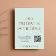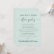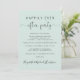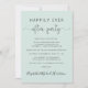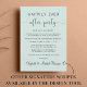 Stilvolles helles und grünes Ambiente oder private Hochzeitsankündigung und Einladung zum Empfang. An der Vorderseite steht "Happily Ever After Party" in einer Mischung aus einfacher Typografie und einem eleganten Drehbuch mit Swashes, und Sie können Ihre Nachricht und Einladung personalisieren und Ihre Namen in einem signaturähnlichen Skript hinzufügen. Auf der Rückseite geben Sie Ihre URL-Adresse der Hochzeit-Website ein, um einen QR-Code für Gäste zu erstellen, um nach allen Details zu scannen und online zu UAWG.