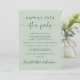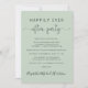 Stilvolle Weise grüne Entdeckung oder private Hochzeitsankündigung und Empfang oder Feier Party Einladung. Vorn steht "Happily Ever After Party" in einer Mischung aus einfacher Typografie und einem eleganten Drehbuch mit Swashes; personalisieren Sie Ihre Nachricht und Einladung und fügen Sie Ihre Namen in ein signaturartiges Skript ein. Auf der Rückseite geben Sie Ihre Website-Adresse Hochzeit-URL, um einen QR-Code für die Gäste zu scannen, um alle Details und UAWG online und fügen Sie Ihre Vornamen und Hochzeit-und Empfang-Daten.
