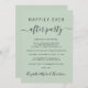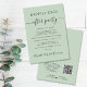 Chic Salbeigrün oder private Hochzeitsankündigung und Hochzeitsempfang oder Feier Party Einladung. "Happily Ever After Party" ist in einer Mischung aus einfacher Typografie und einem eleganten Drehbuch mit Swashes geschrieben. Personalisieren Sie Ihre Heiratsankündigung und Empfang-Einladung und fügen Sie Ihre Namen in einem signaturähnlichen Skript hinzu. Auf der Rückseite geben Sie Ihre URL-Adresse der Hochzeit-Website ein, um einen QR-Code für Gäste zu erstellen, um nach allen Details zu scannen und online zu UAWG.