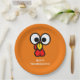 Glücklicher die Erntedank-Türkei-Abendessen-Party-Papier-Teller ist mit dem Gesicht eines niedlichen Truthahn-Cartoon und der Feiertagsgrüße lustig. Haben Sie Spaß mit Freunden und Familie mit diesem niedlichen und humorvollen Partypapier-Teller.