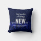 Stilvolle Marine THROW PILLOW für das neue Jahr 2020 mit der Nachricht GOD MACHT ALLES NEUE MIT GLÜCKLICHEM NEUES JAHR in hellgrauer Typografie. Das Jahr 2020 ist in tiefkobaltblauer Schrift geschrieben, mit dem Bibelvers aus Offenbarung. Auf der anderen Seite befindet sich das glückliche NEUE JAHR in einem subtilen Fliesenmuster. Dies ist eine ideale Ergänzung zu Ihrer festlichen Winterzeit-Wohngestaltung und ist Teil der NEW YEAR Collection von Berean Designs.